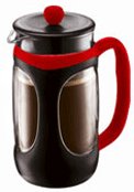 Excellent Coffee The Bodum Young coffee press is so easy, and makes a wonderful cup (about 2 1/2 mugs total) of coffee. If you can't afford an expresso maker, this is the next best thing for a good mug of coffee. I really like the plastic sleeve around the glass also, as it protects the glass from breaking, and keeps the second cup of coffee warm longer than other Bodums. Always use a Bodum There are many reasons to get this Bodum coffee press. 1. the best priced 8 cup bodum there is. 2. Coffee presses give you 'virgin' coffee flavor. 3. the carafe is nesteled in and protected by the durable frame that is made of santoprene - a hard rubber like material. The windows are made of clear polycarbonate. If you were ever afriad you'd break your Chambord style press, as I have been many times, get the Young Press instead. Perfect! This is the best french press that I have ever owned. Great coffee and the beaker is fully protected by rubber armor. Highly recommended.
