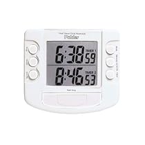 Timing meals is now easier with this Dual Kitchen Timer. Timers can measure up to 20 hours each. Each clock is independent from the other. The timer measures 3" x 2 5/8". Memory feature can be used for frequently used settings. 12/24 hour clock. Tim