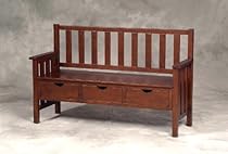 Create added seating and storage to your foyer or mudroom with this attractive and functional Three Drawer Storage Bench. The bench is made of hardwood construction and coated in a rich walnut finish. The bench features three spacious drawers underneath the seat for easy storage. The slat designed back and sides are enhanced by the warm walnut finish.